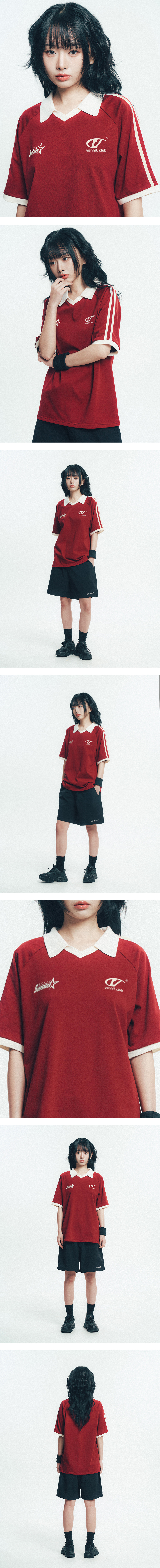 사커 두줄 테잎 배색이 돋보이는 스포티 무드의 반팔티