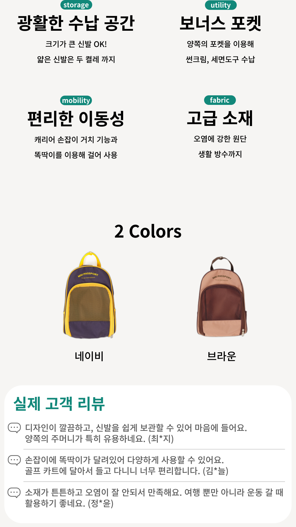 3단 포켓으로 간단한 화장품부터 욕실 용품까지 한번에 챙겨서 깔끔하게 쓰기!