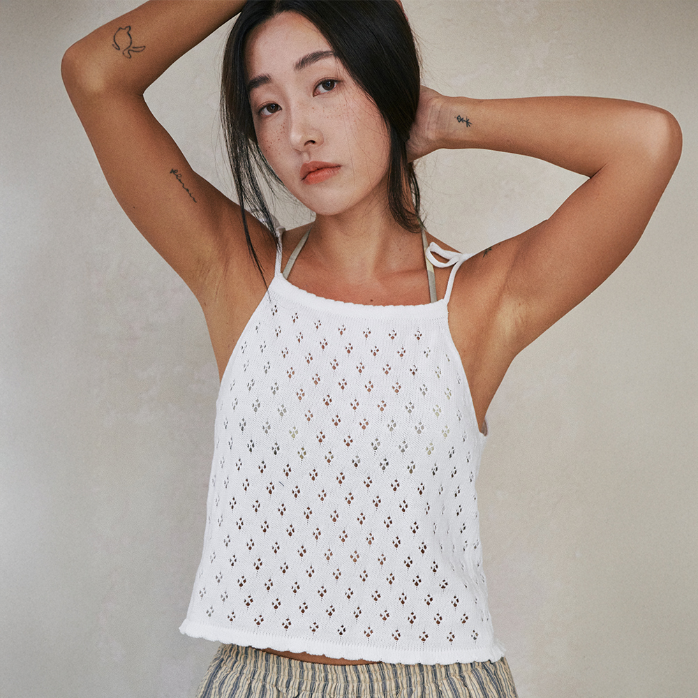 깊지 않은 U넥과 편안한 착용감의 암홀 라인과 트렌디한 크롭 기장의 제품으로 스포티한 조거팬츠와 코디하거나, 데일리룻 및 여행, 휴가룩 등으로 다양하게 스타일링 해보세요.