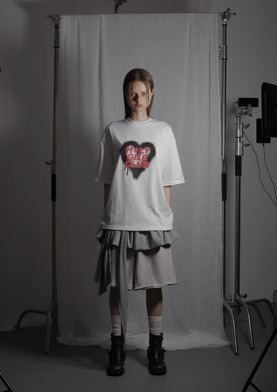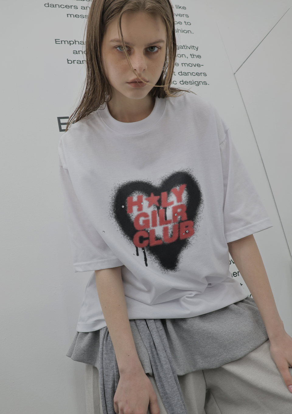 OVERSIZED HIP HOP DANCE STUDIO HEART GRAPHICS SHORT SLEEVE T-SHIRT_WHITE