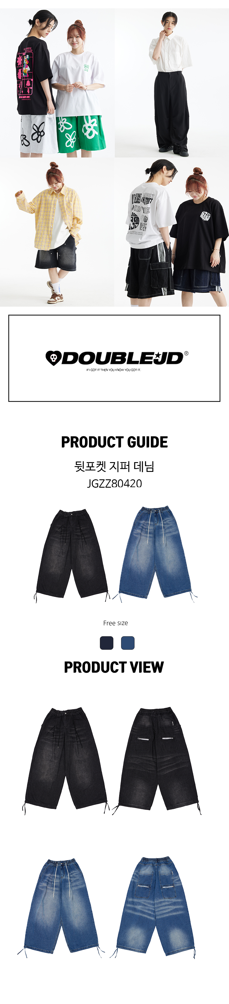 뒷포켓 D자수가 포인트인 와이드 데님팬츠