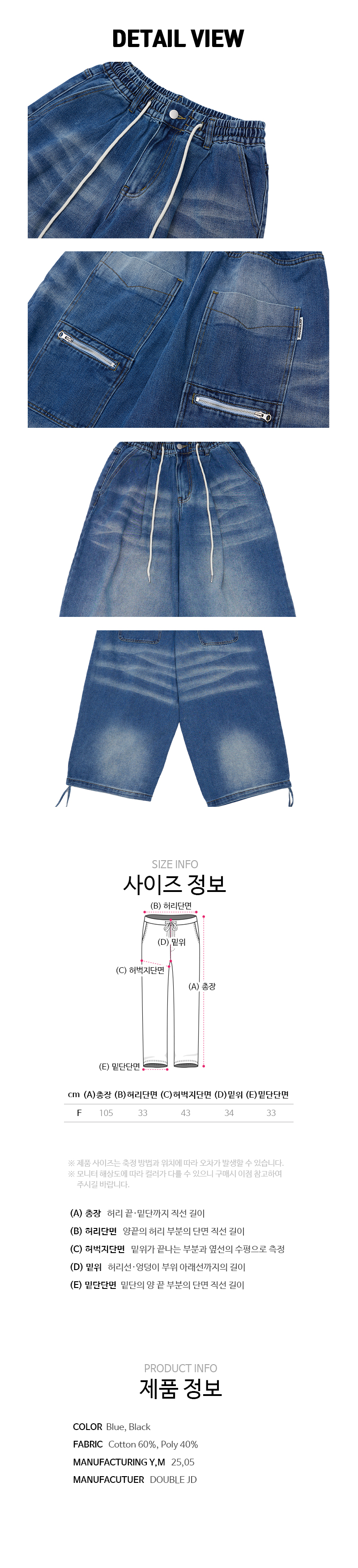 Shabby Wide Utility Denim Pants (Vintage Blue)