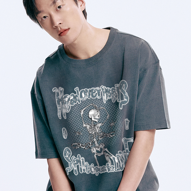 가벼운 소재로 그래픽이 특징인 스트릿 캐쥬얼 반팔티셔츠