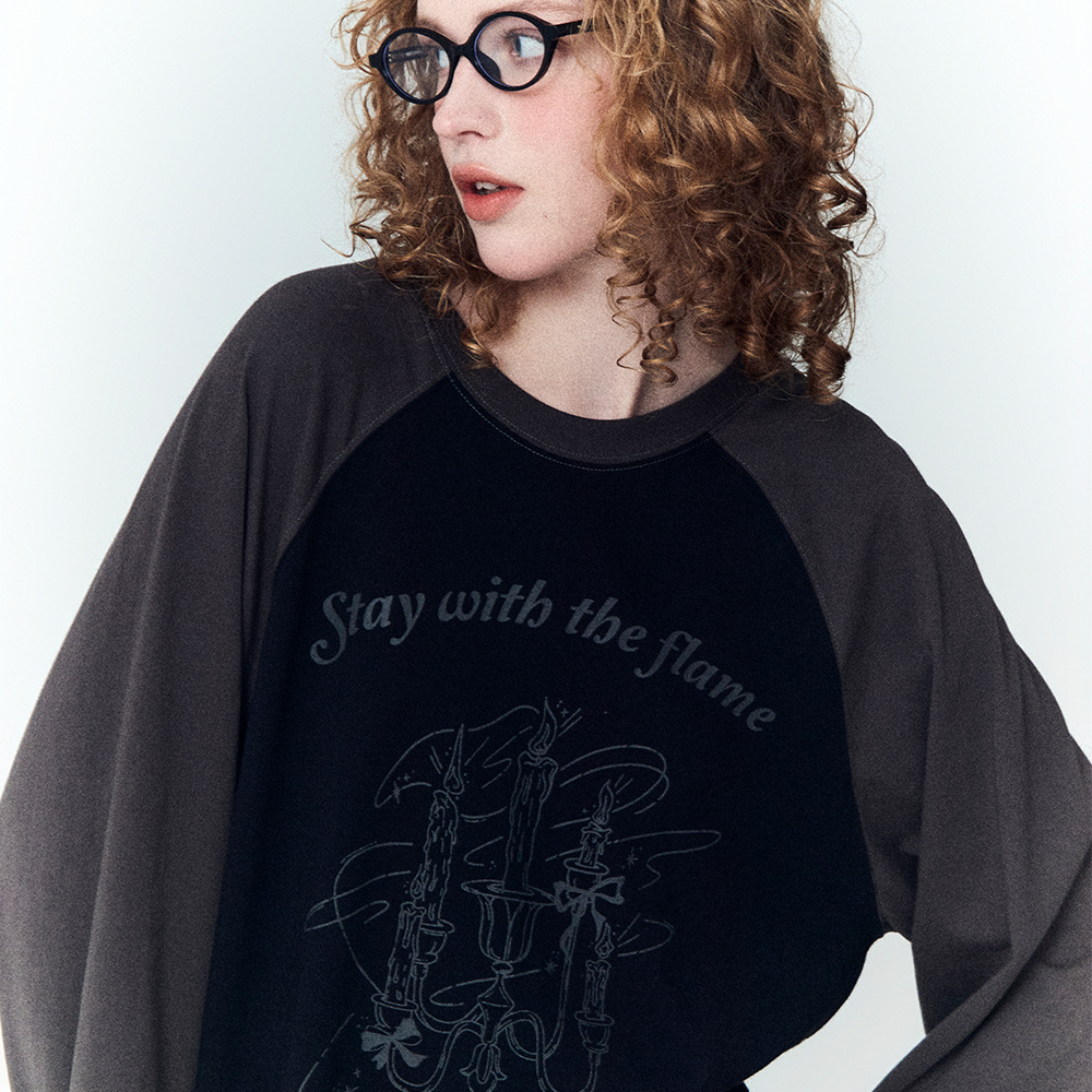 Ribbon Cherry Track Raglan Long Sleeve (Melange White)