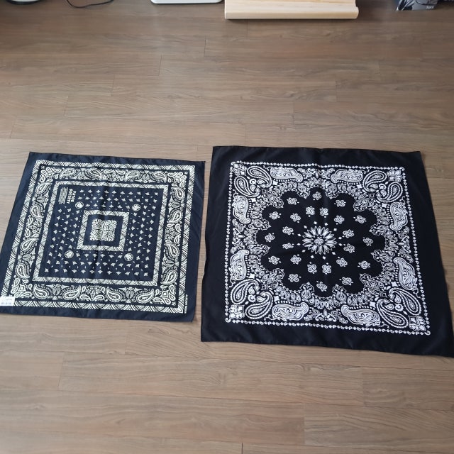 블랙 커다란 반다나 찾다가 구매했습니다.크기가 원하는만큼은 아니지만 제법 커다랗습니다