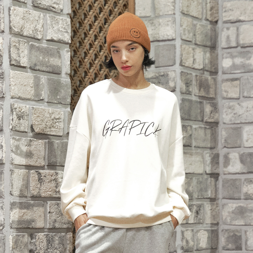 크롭 르 리스 발포 엠보자수 맨투맨