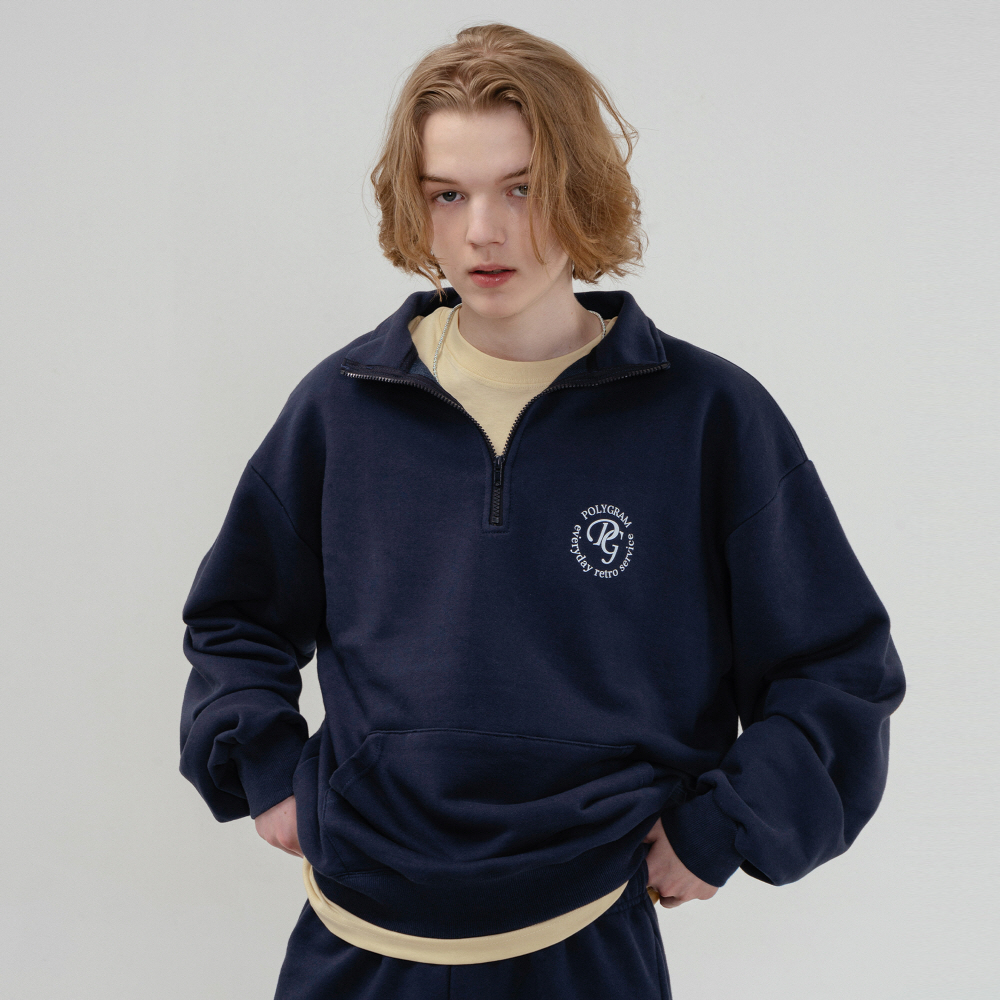 자수 로고 포인트의 반집업 맨투맨