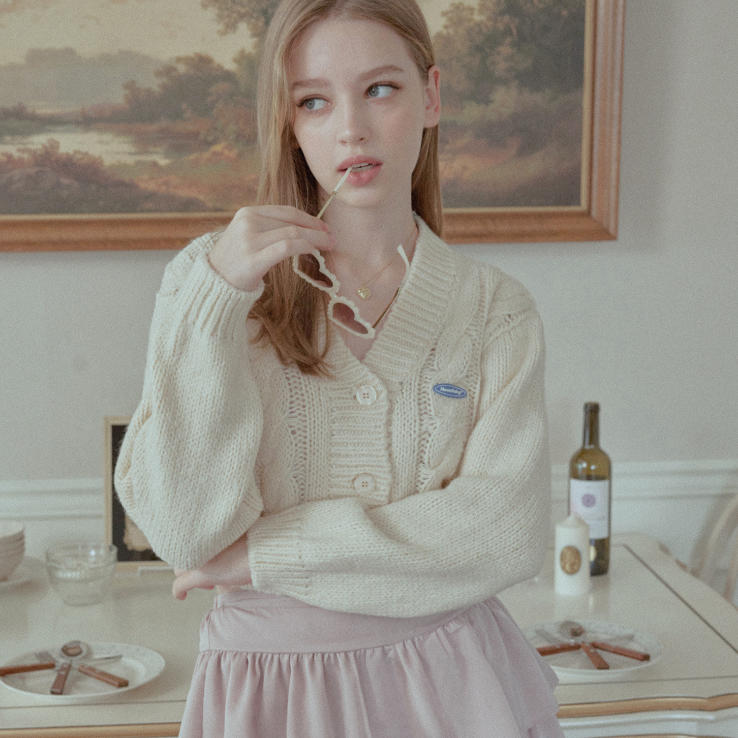 은은한 프릴 디테일이 더해진 러블리한 무드의 브이넥 가디건
