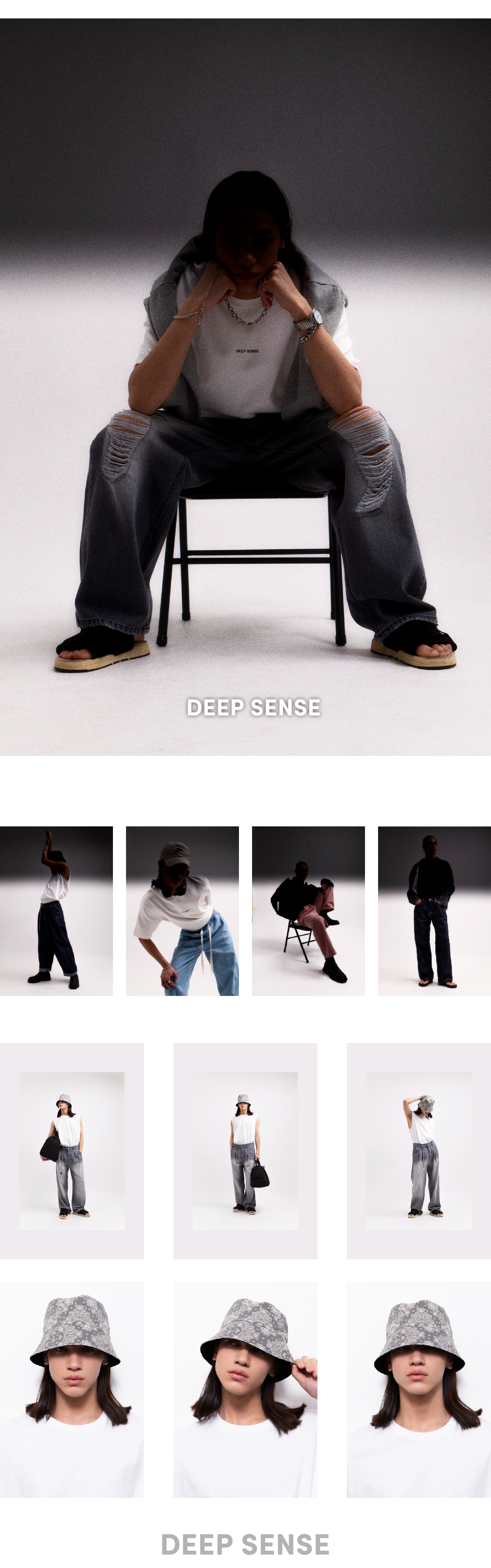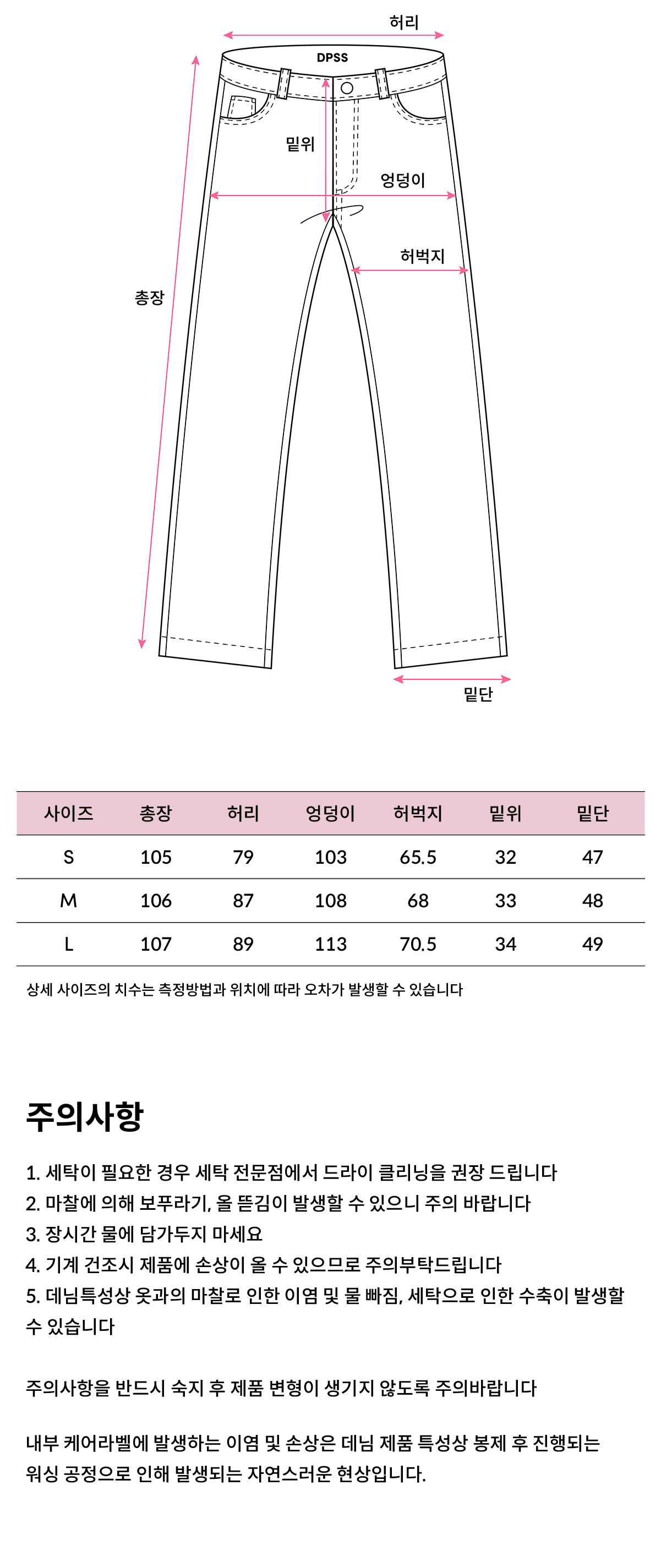 슬라브원단에 빈티지한 워싱 및 오염된듯한 워싱을 한 데님팬츠
