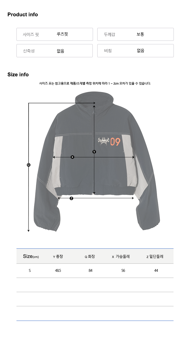The nylon outer material and ripstop material panel mix match create a unique mood. It is a wind stop cropped jumper with a loose fit and cropped length for easy movement and embroidered details of the artwork that creates a sporty mood and unique sensibility.
