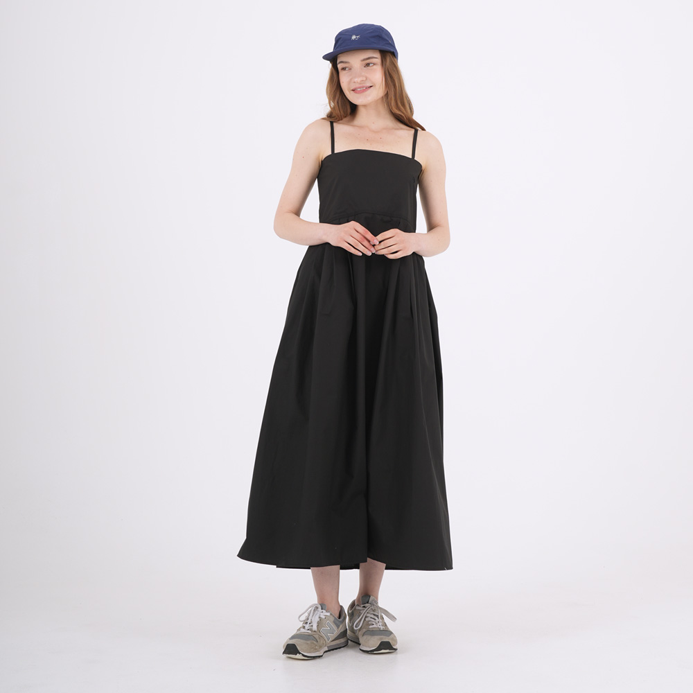 텐셀 린넨 혼방원단으로 흐르는 텍스처가 고급스러운 무드를 자아내고 세미벨라인의 슬리브리스 드레스로 벨르마만의 퀄리티와 슬림한 핏을 연출합니다.