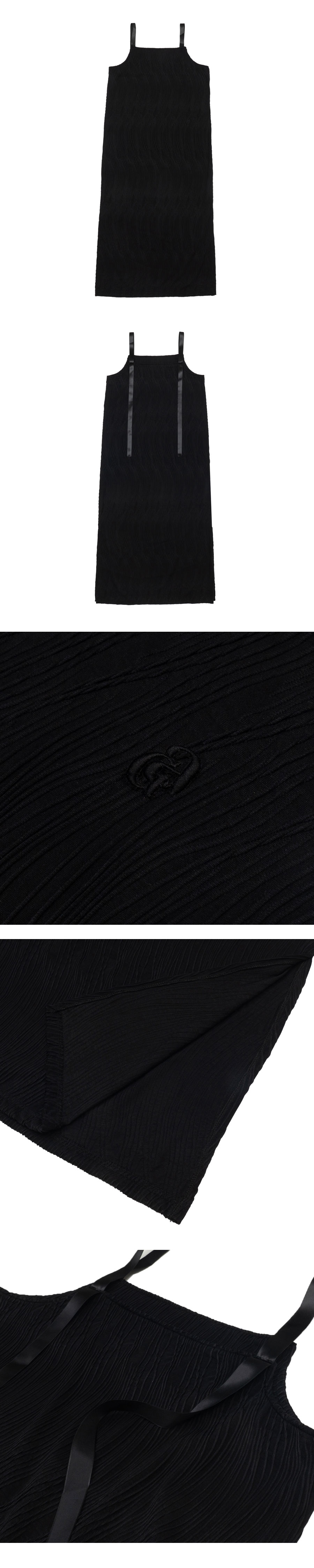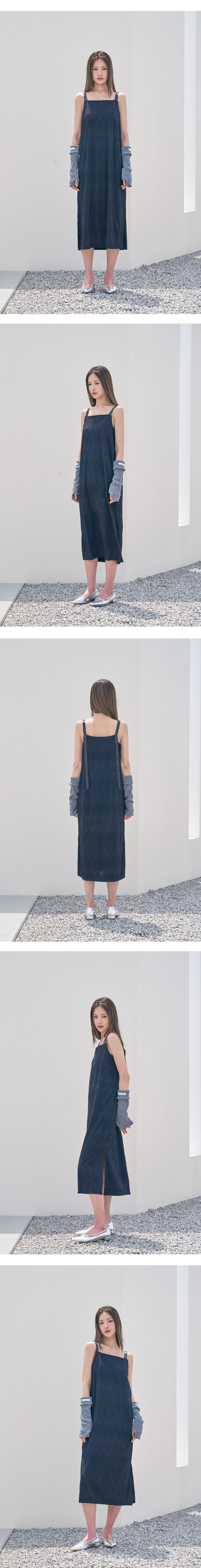허리 셔링 끈이 돋보이는 슬리브리스 롱 원피스