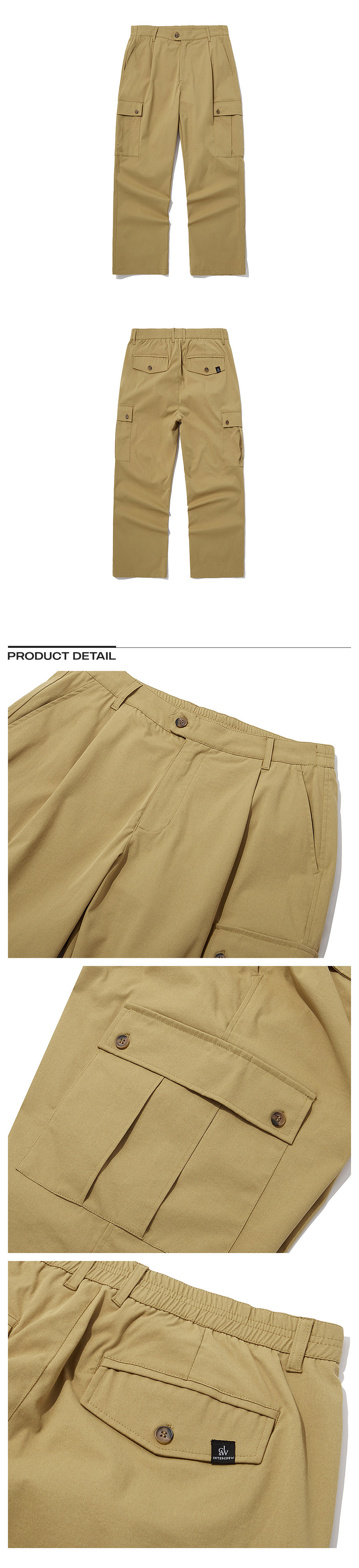 Pigment Knee Tuck Cotton Cargo Wide Pants ((Beige))