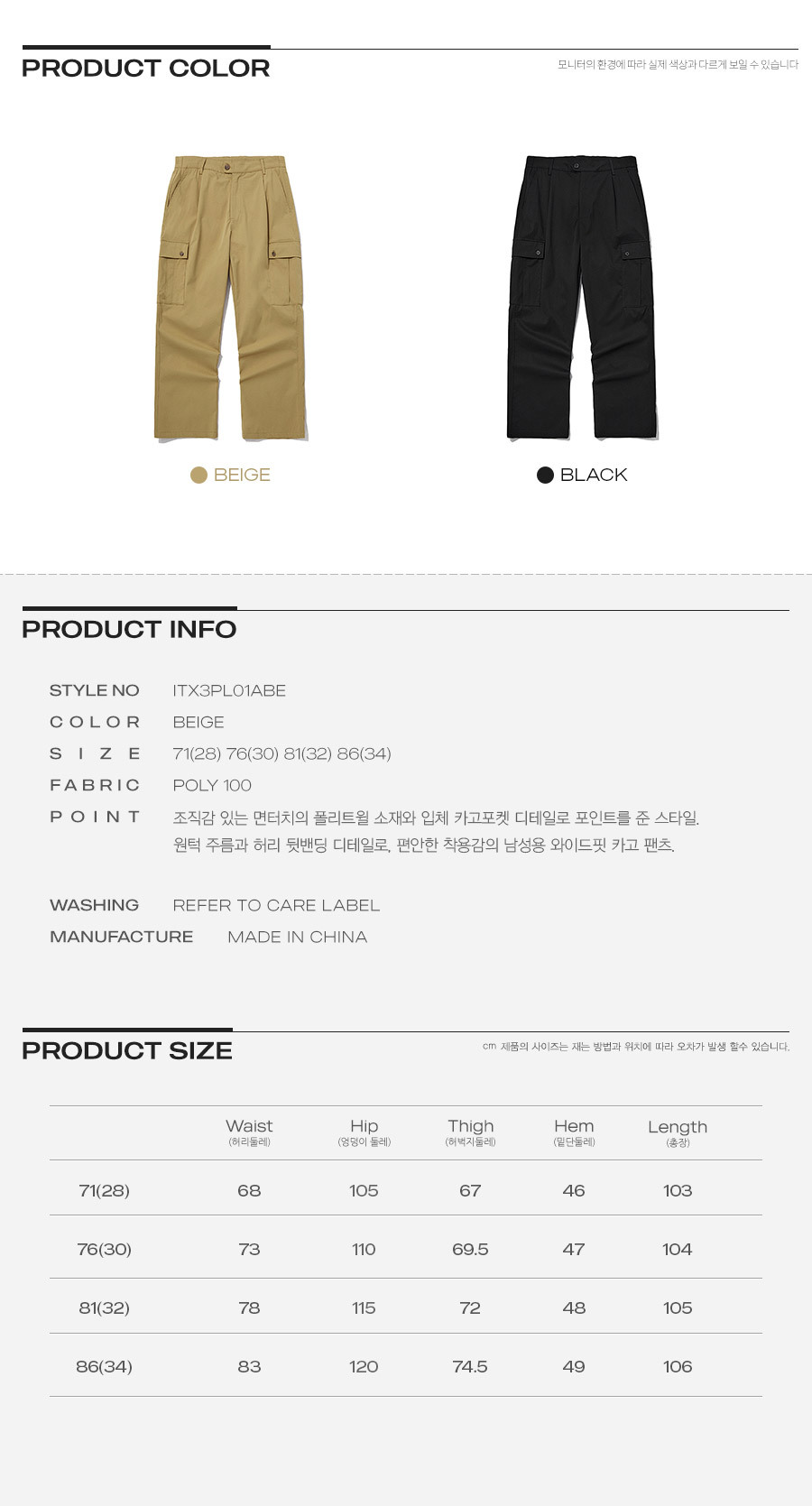 발데블랑코 [2SET] 파라슈트 와이드 원턱 카고 스트링 롱팬츠