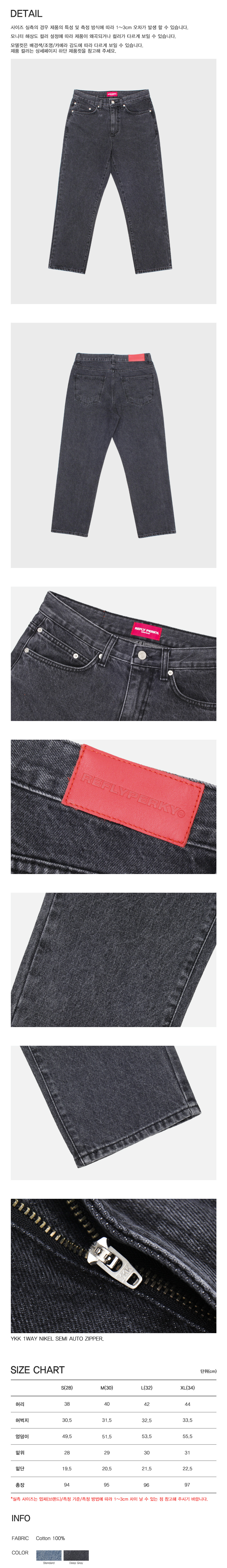 슬라브원단에 빈티지한 워싱 및 오염된듯한 워싱을 한 데님팬츠