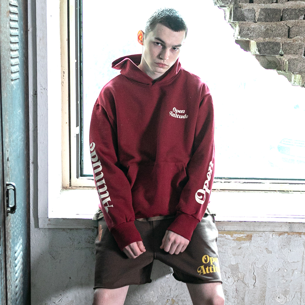 오버핏 후드 배색 엠보자수 후드 버건디(FCF3TS645M)