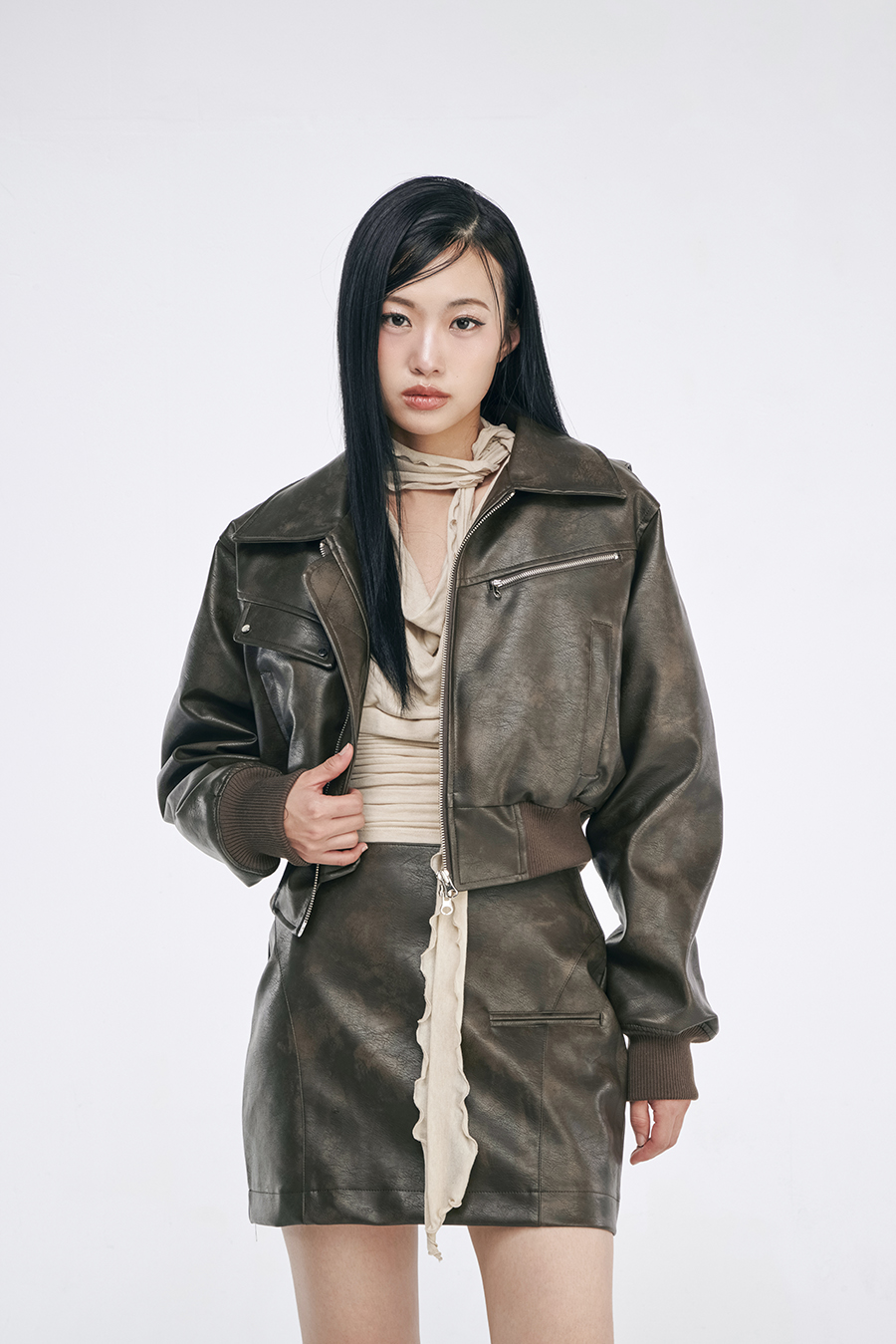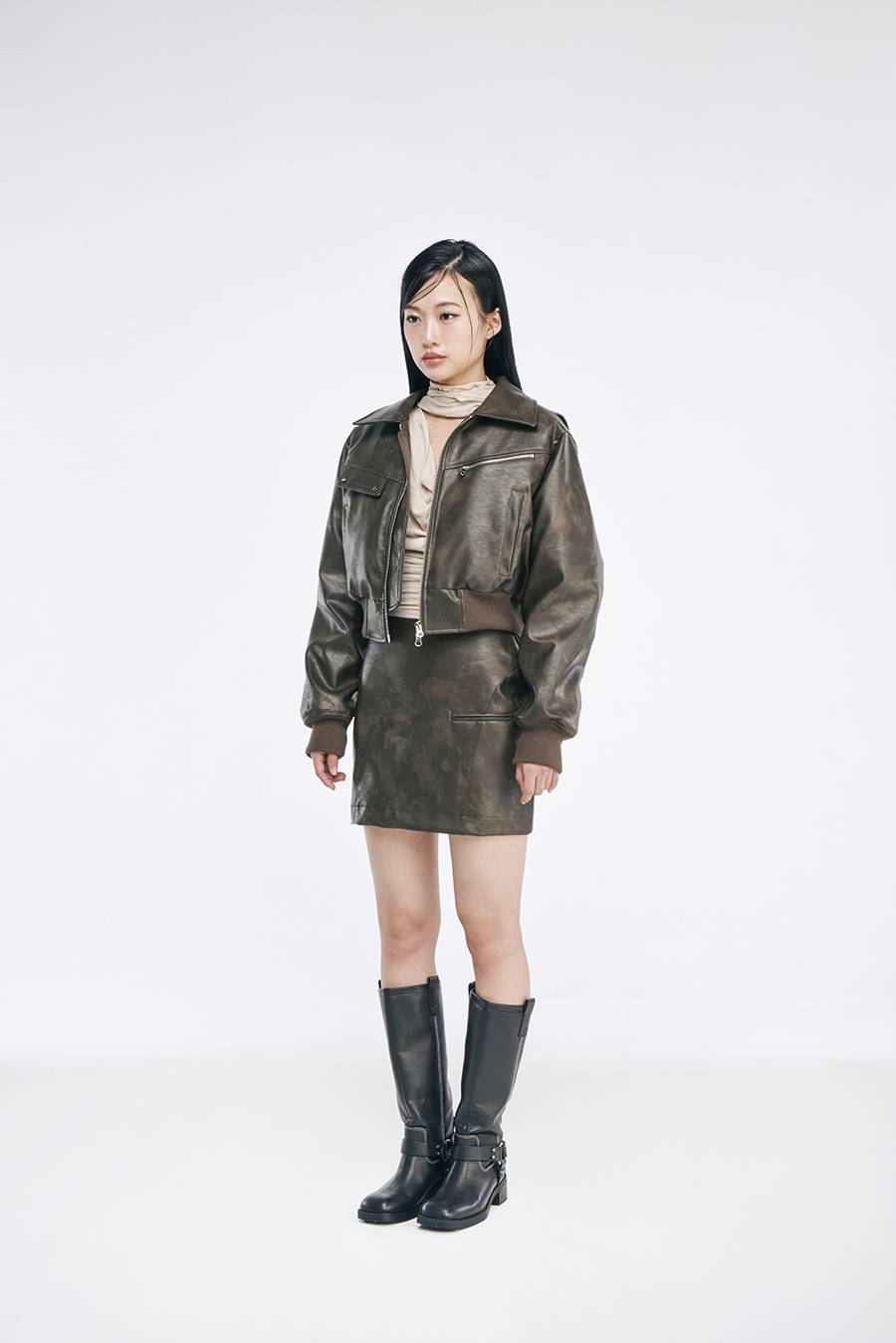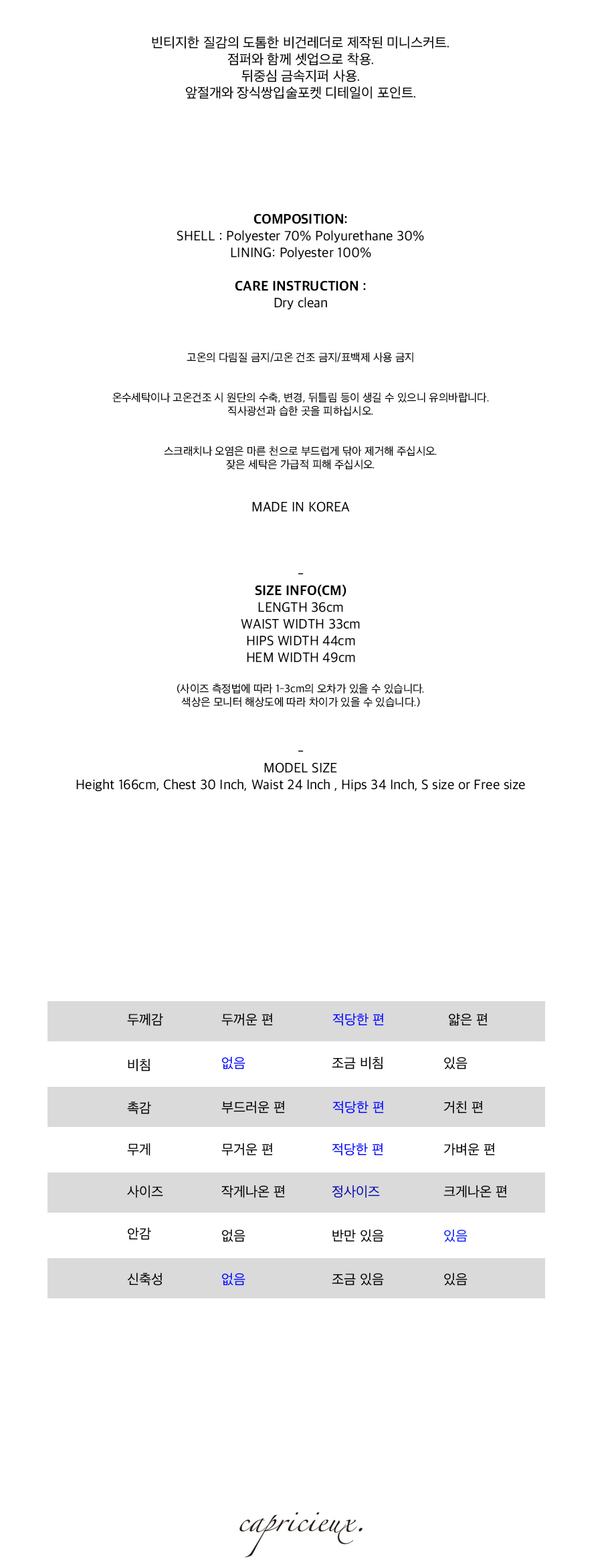 스트레치성이 좋은 탄탄한 조직의 소재는 바디 실루엣을 더욱 날씬하게 보이도록 잡아줍니다.