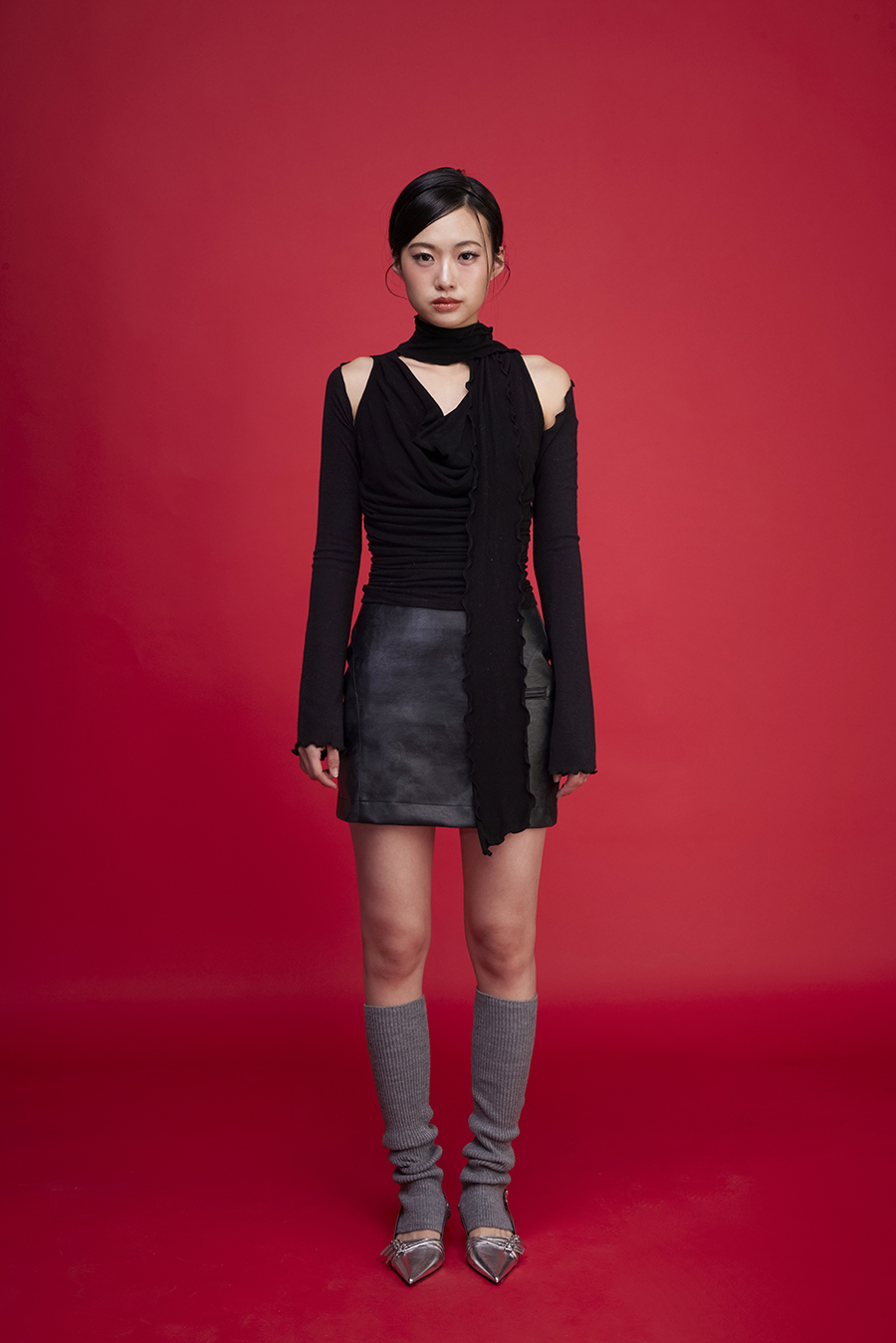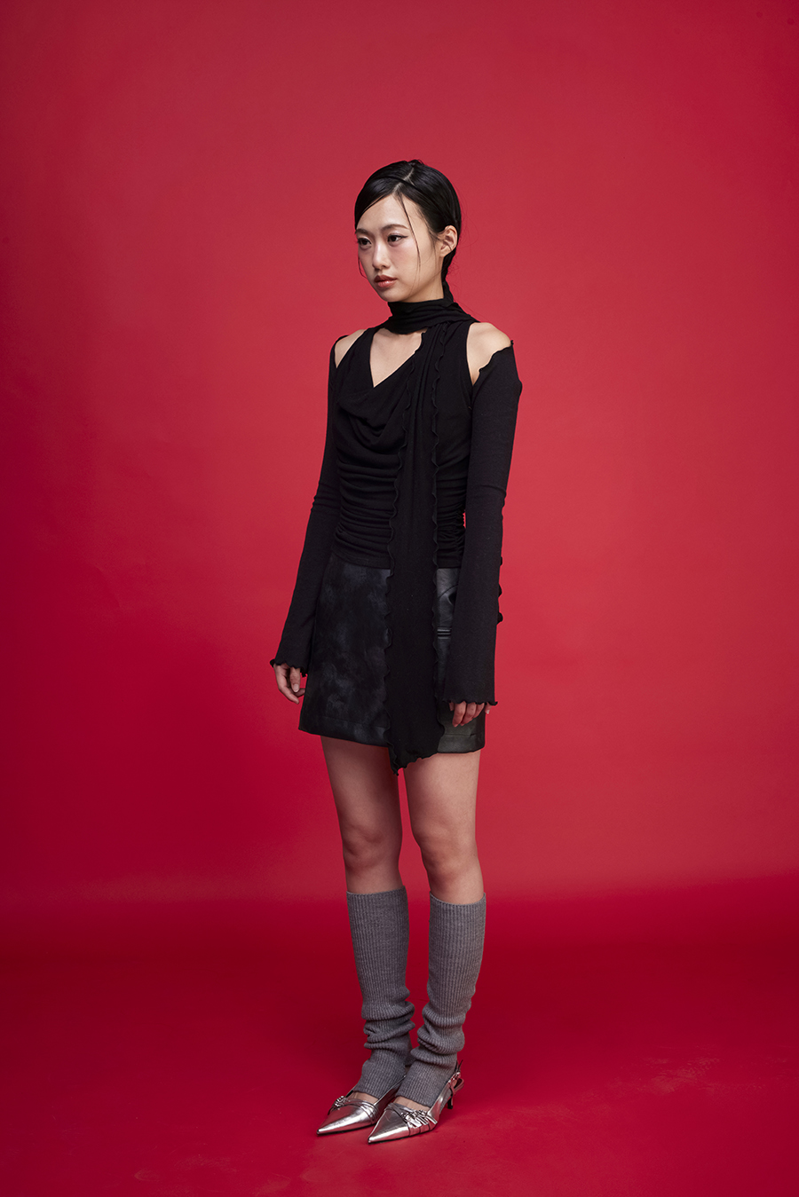 부드럽고 신축성 있는 골지 원단의 크롭 니트