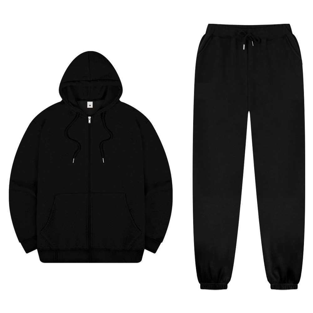 SET UP OVERFIT 2WAY ZIP-UP & STRAIGHT or JOGGER SEWATPANTS - BLACK