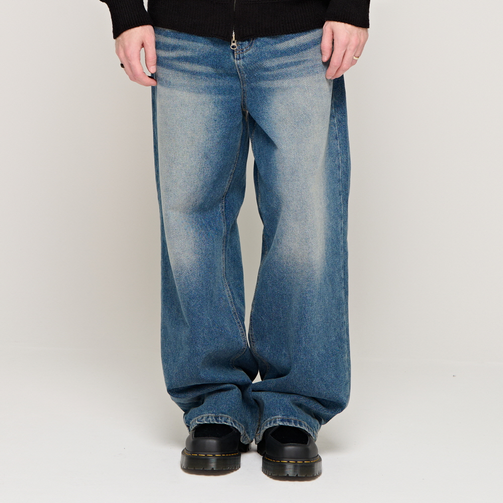 TWIST INCISION WASHING DENIM PANTS(SAND BLUE)