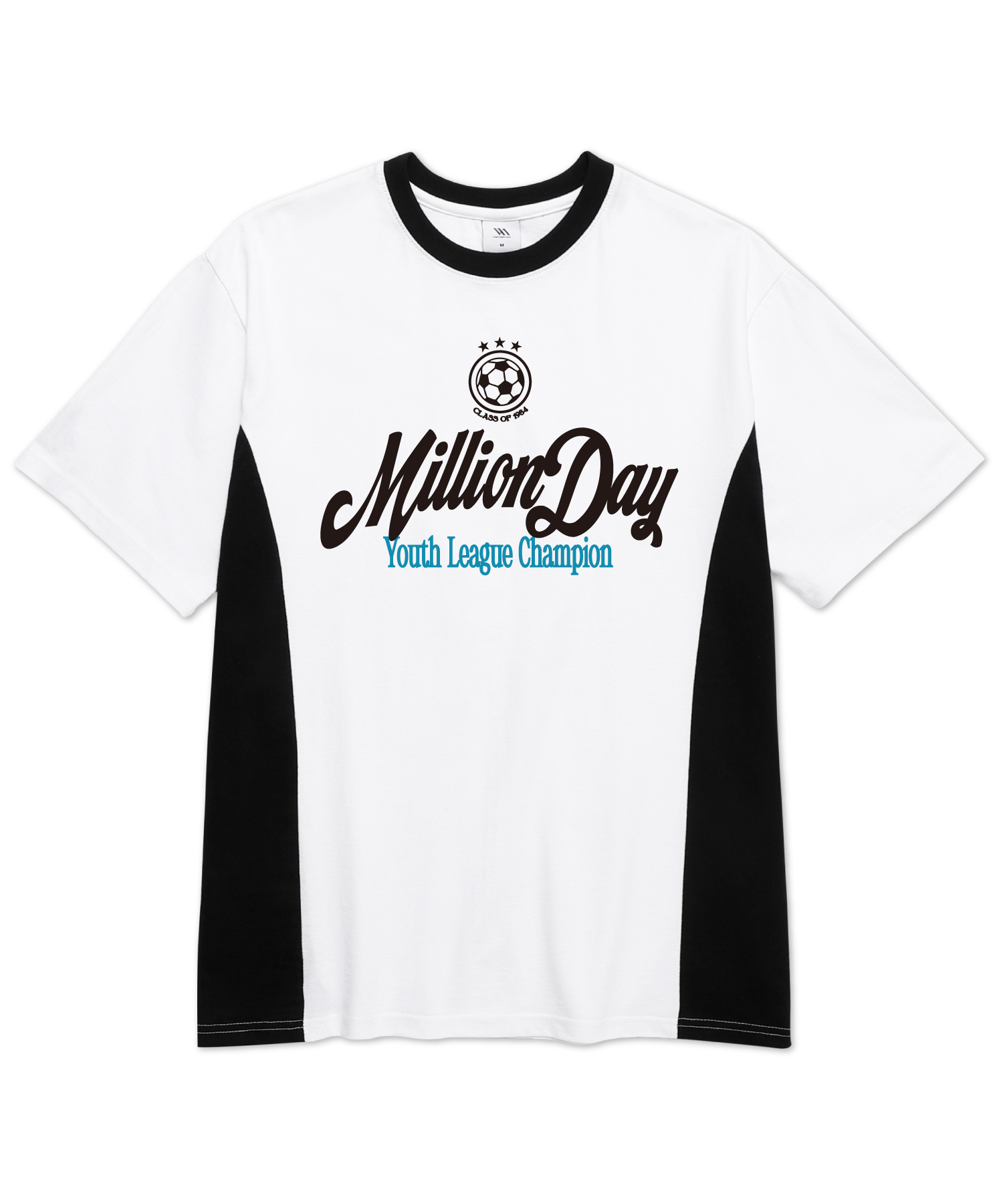사커 두줄 테잎 배색이 돋보이는 스포티 무드의 반팔티