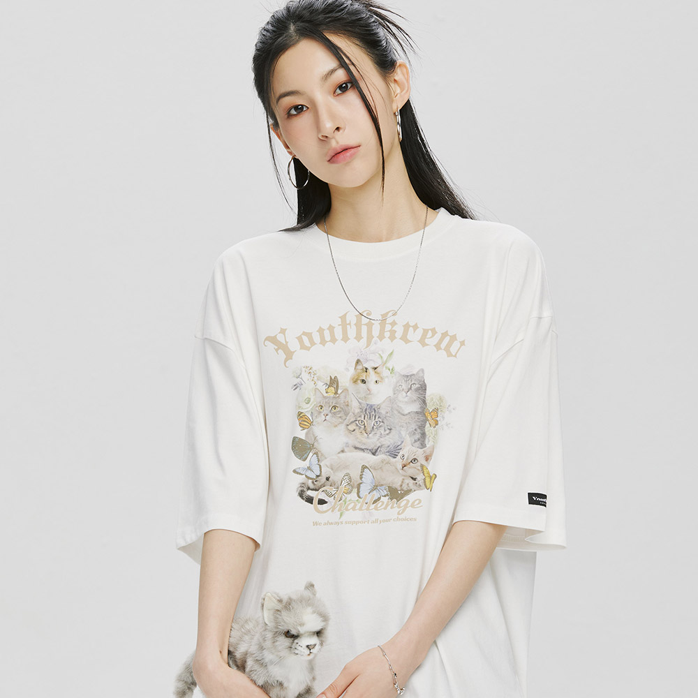 포인트를 더해주는 고양이 그래픽 반팔 티셔츠