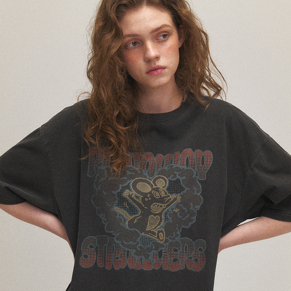 가벼운 소재로 그래픽이 특징인 스트릿 캐쥬얼 반팔티셔츠