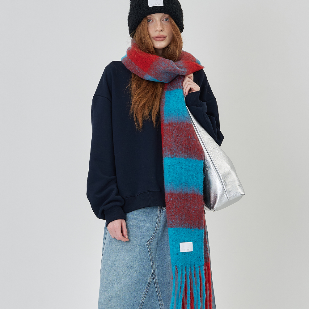 유니크한 스트라이프 디자인의 타이 니트 머플러