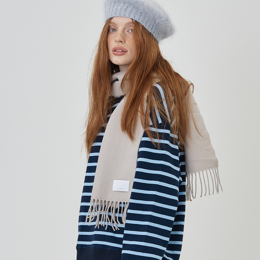 유니크한 스트라이프 디자인의 타이 니트 머플러