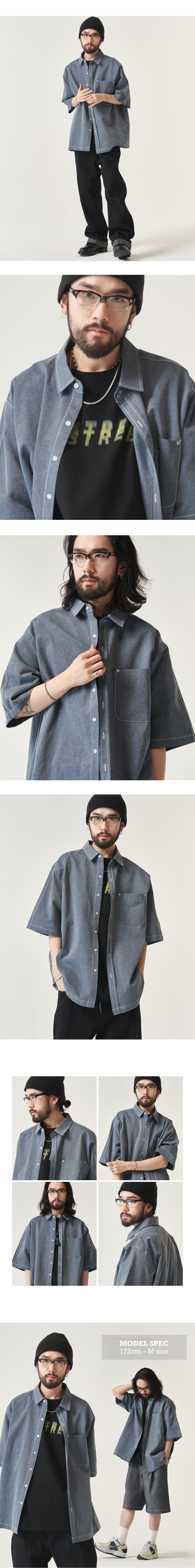 M63 Fisherman Cool Denim Short Sleeve Shirt Light Blue