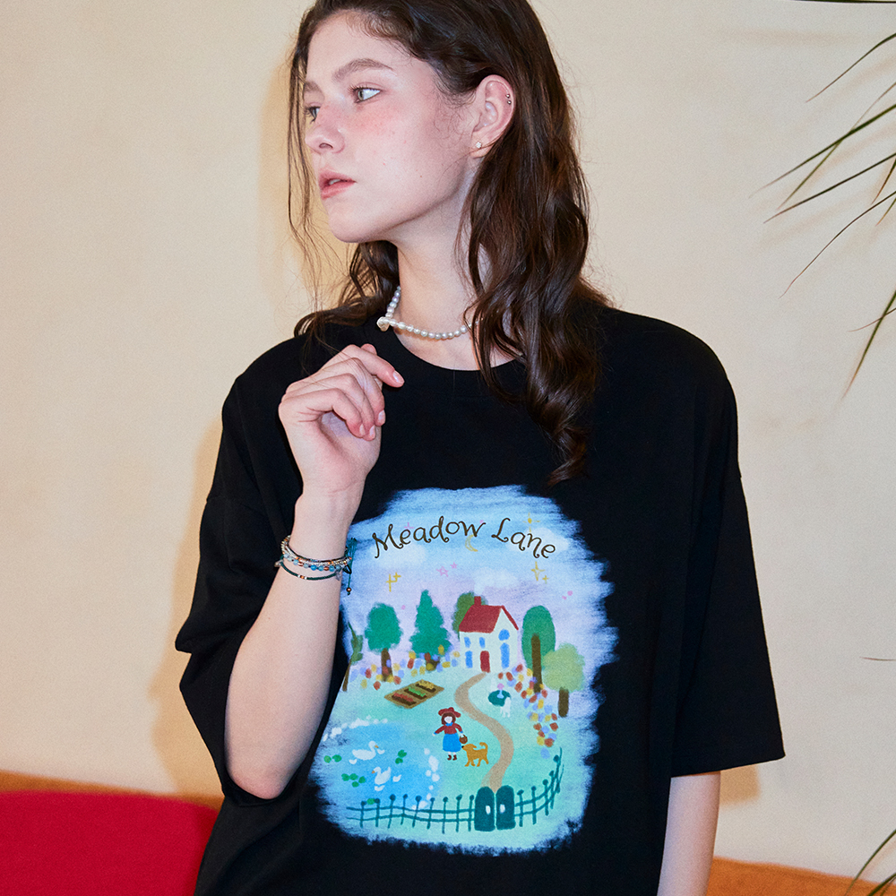 T-shirt oversize unisexe avec coupe ample et épaules tombantes.