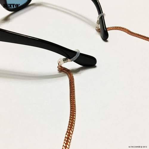 써지컬스틸이라는 소재와 작은 체인임에도 불구하고 견고하며 안경과 연결하는 고리는 고무 소재이므로