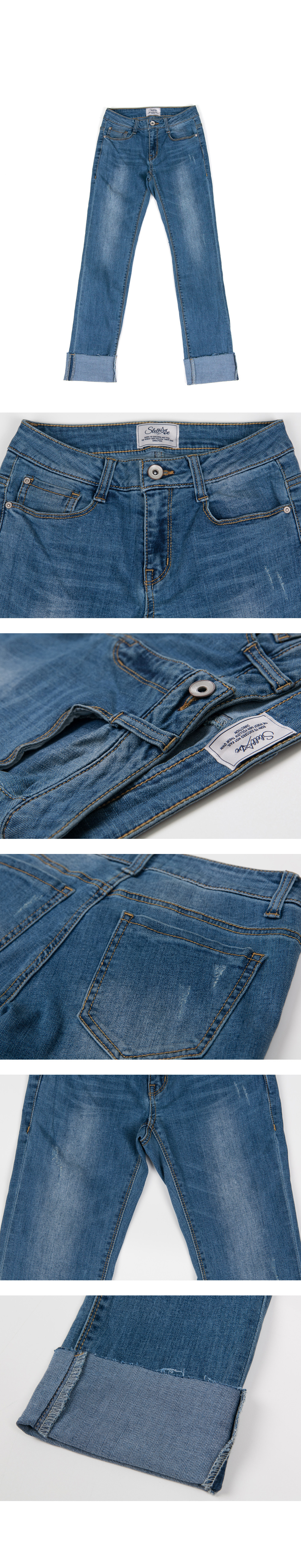 WOMENs SLIM STRAIGHT ROLL UP MID WASHED