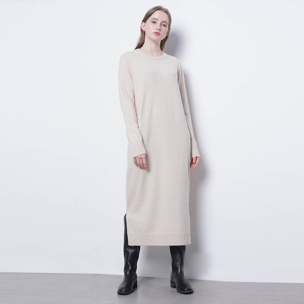 텐셀 린넨 혼방원단으로 흐르는 텍스처가 고급스러운 무드를 자아내고 세미벨라인의 슬리브리스 드레스로 벨르마만의 퀄리티와 슬림한 핏을 연출합니다.