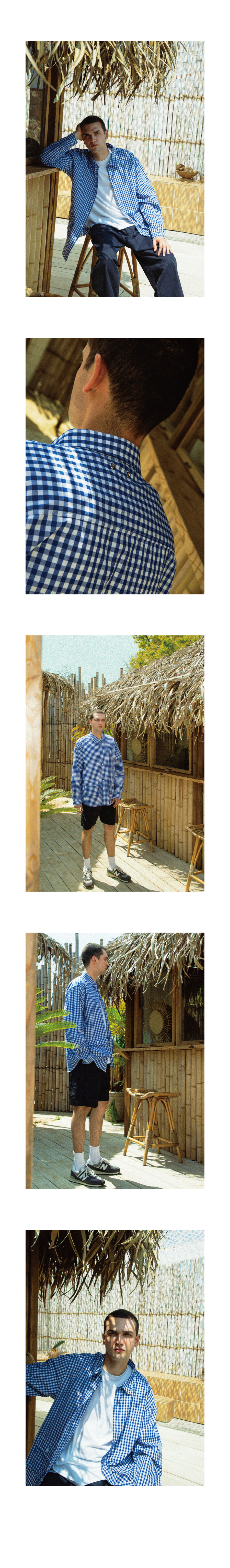 Crop Detachable Crease Check Shirt S167 Faded Navy