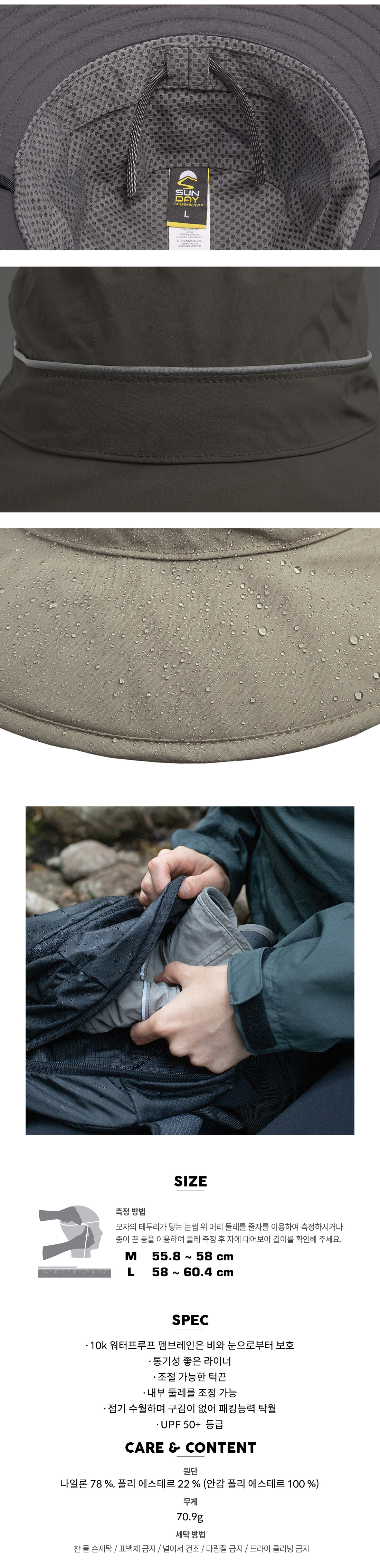안정적인 각도의 챙이 자외선을 더욱 효과적으로 차단! 낚시, 하이킹, 일상에서 모두 착용 가능한 버킷햇!