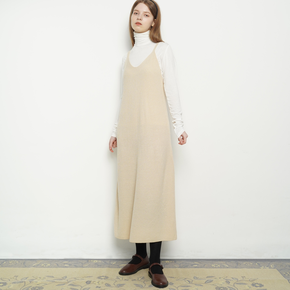 텐셀 린넨 혼방원단으로 흐르는 텍스처가 고급스러운 무드를 자아내고 세미벨라인의 슬리브리스 드레스로 벨르마만의 퀄리티와 슬림한 핏을 연출합니다.