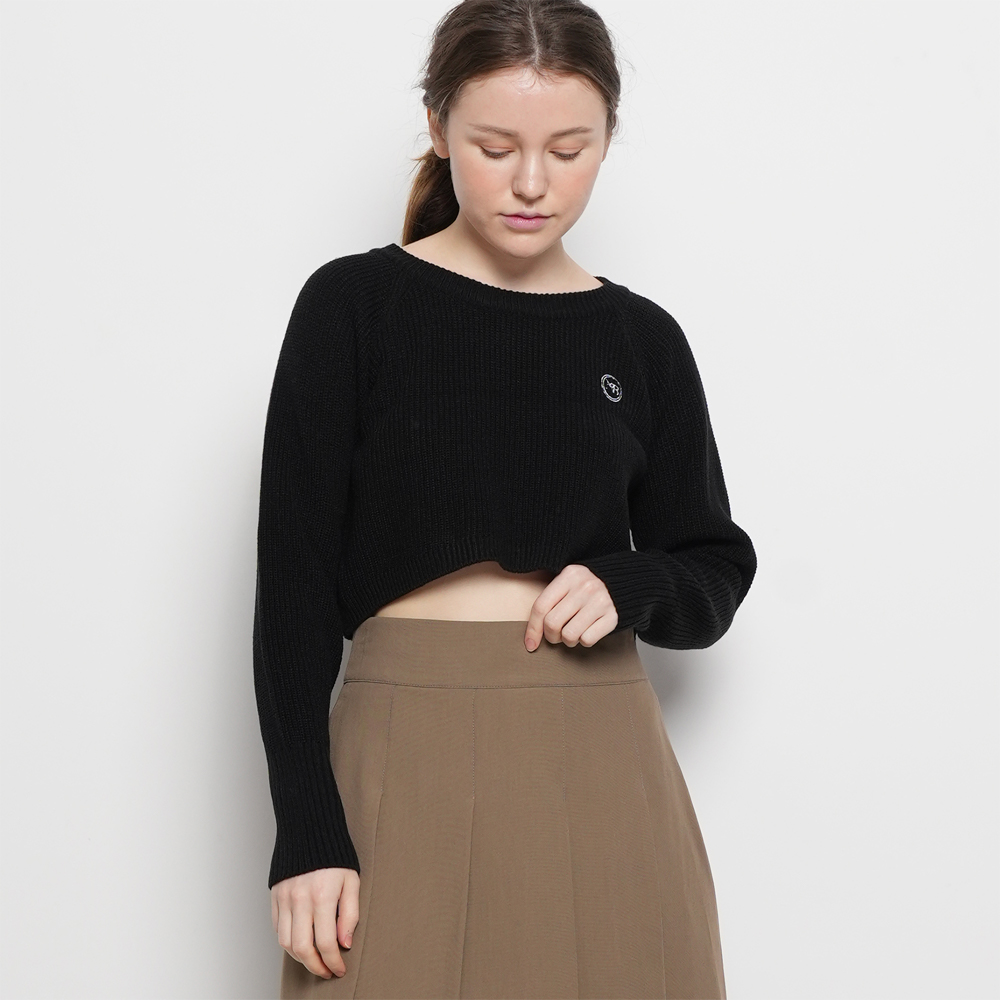 부드럽고 신축성 있는 골지 원단의 크롭 니트