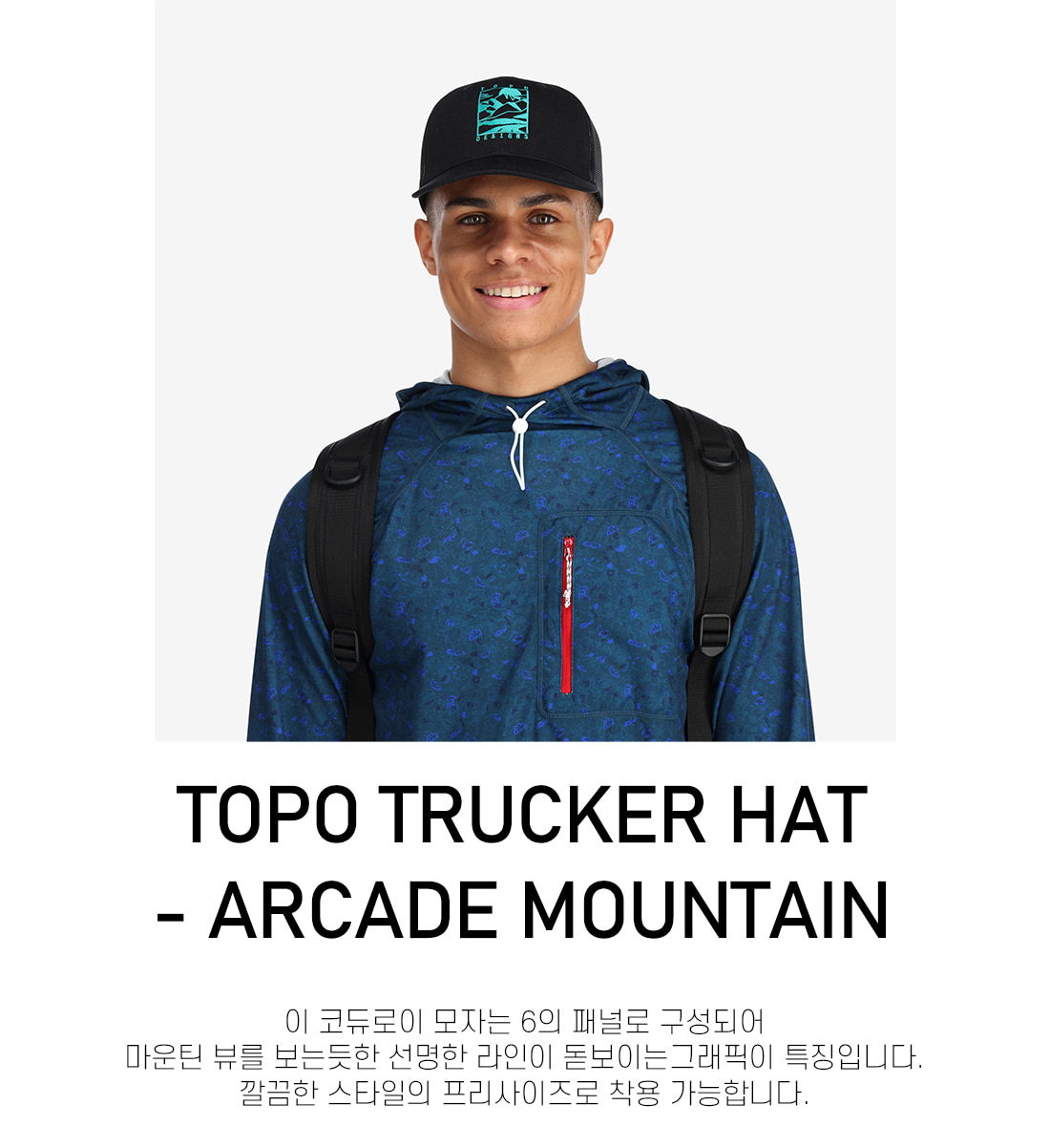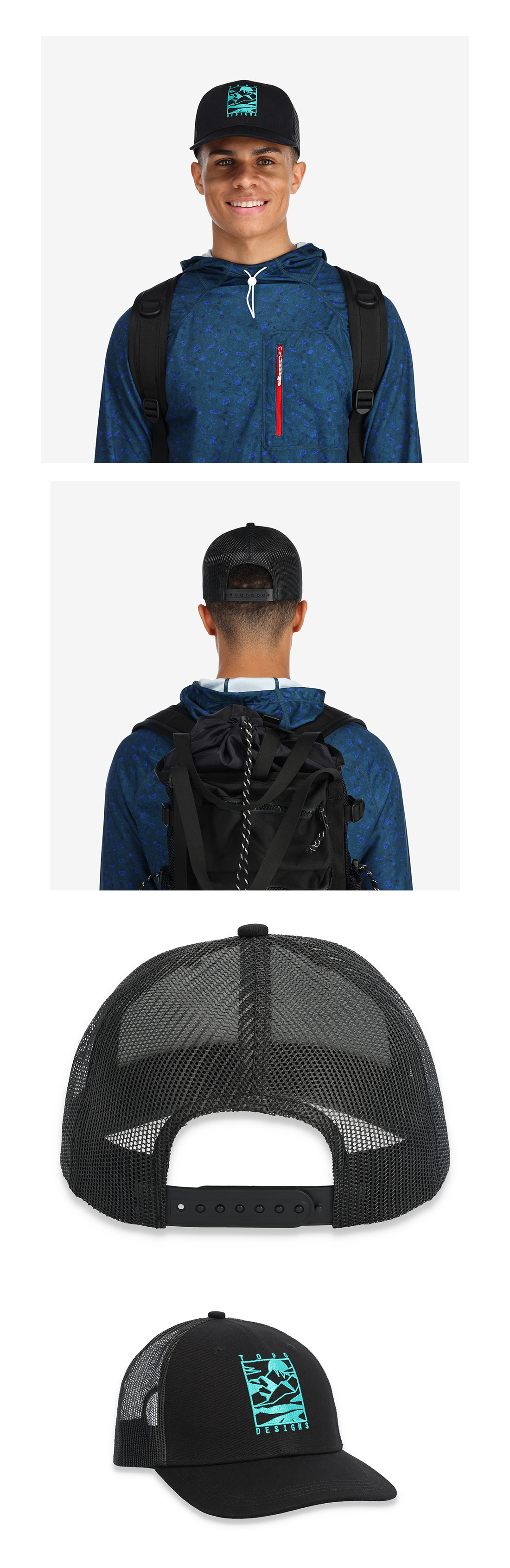 태평양 북서부에서 영감을 받은 그래픽, 나일론 메쉬 소재의 트러커 캡