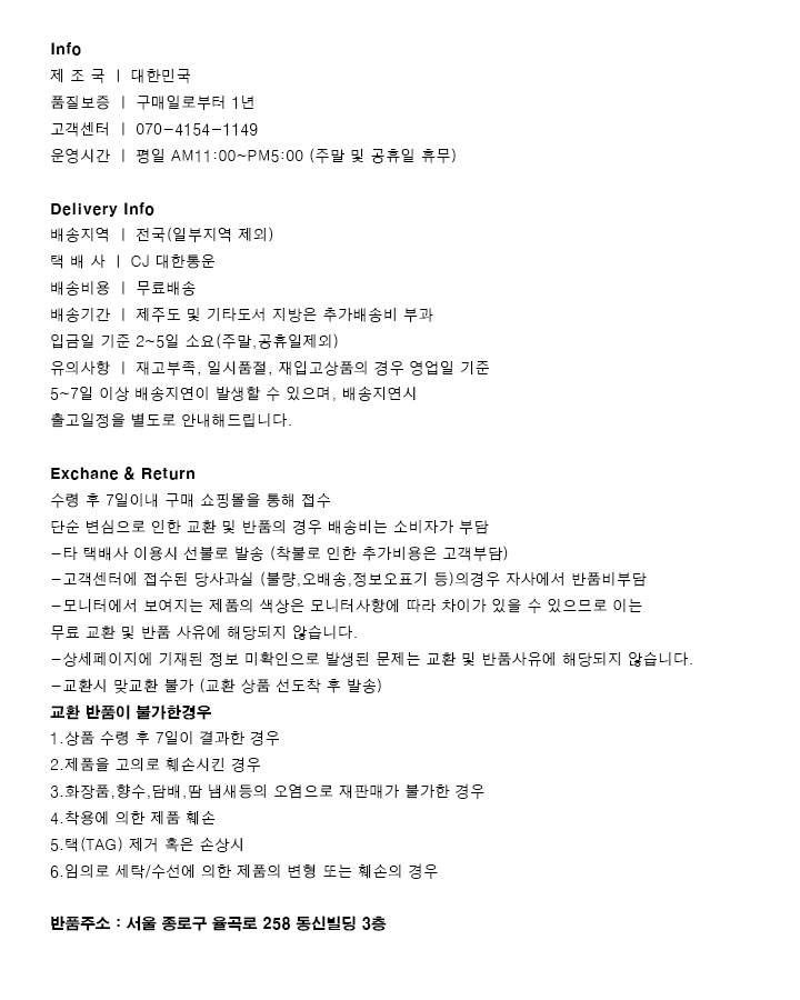 허리:33~61 / 힙:51 / 허벅지:34 / 밑위:40 / 밑단:33 / 총장:43