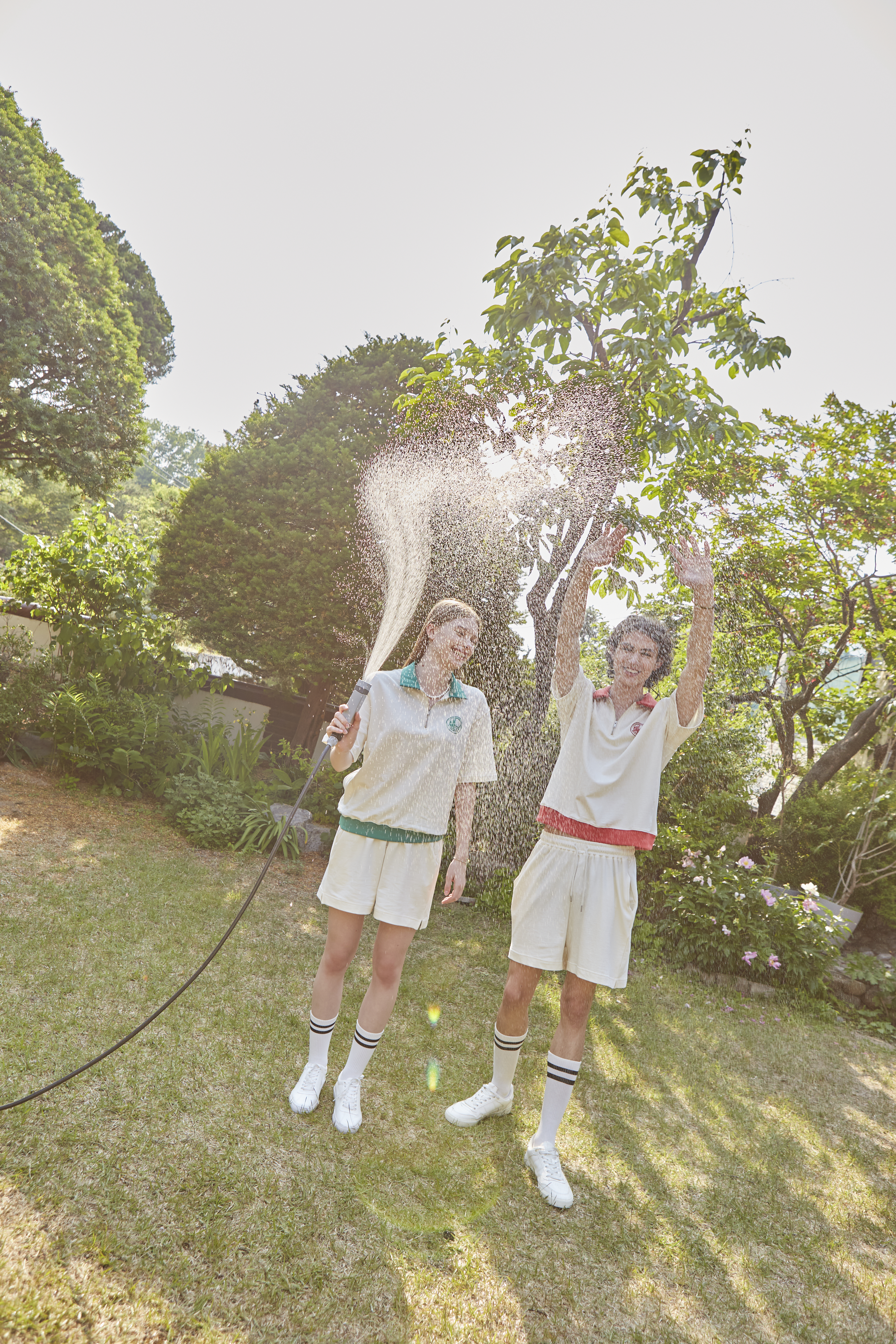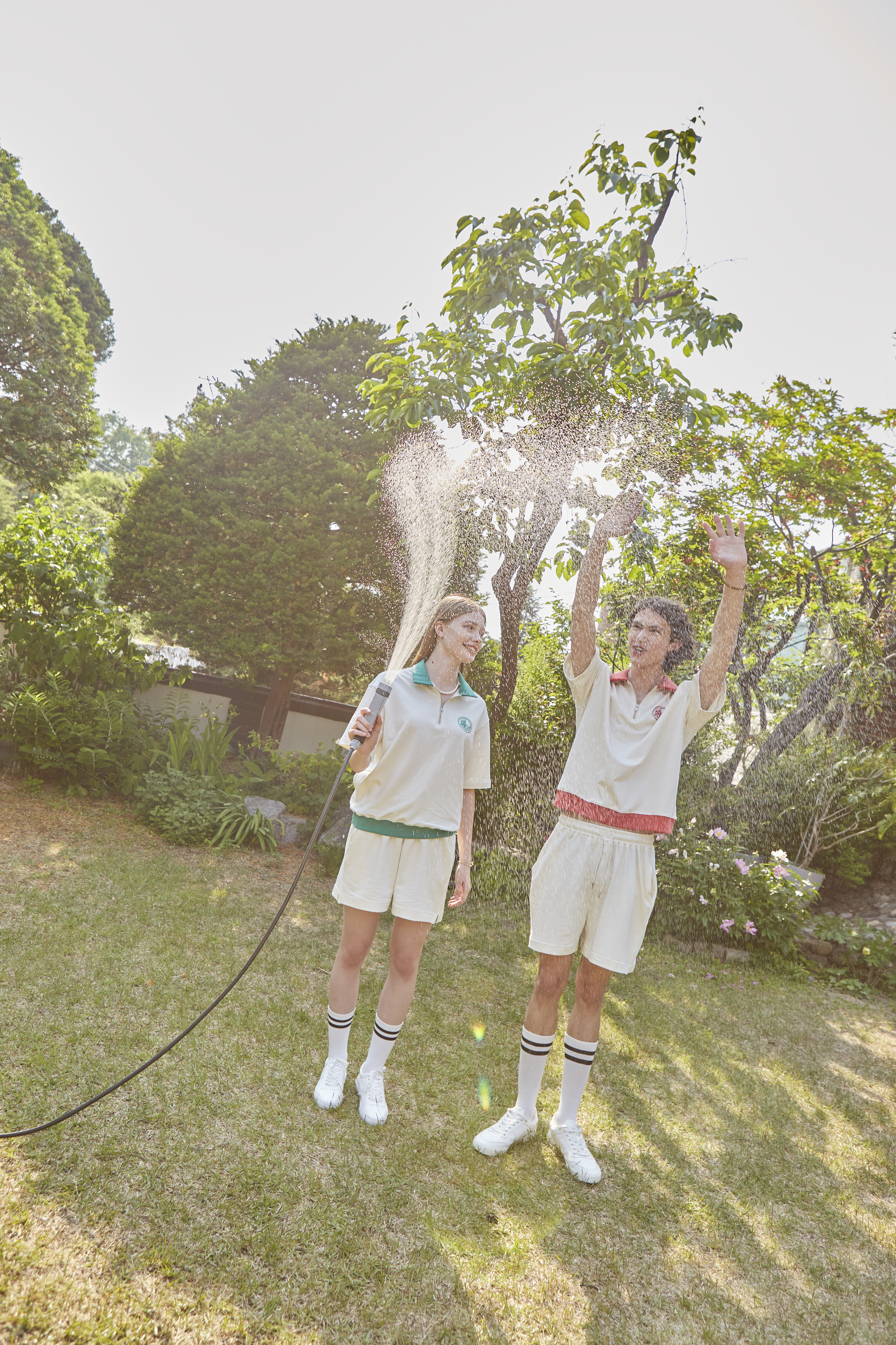 사커 두줄 테잎 배색이 돋보이는 스포티 무드의 반팔티