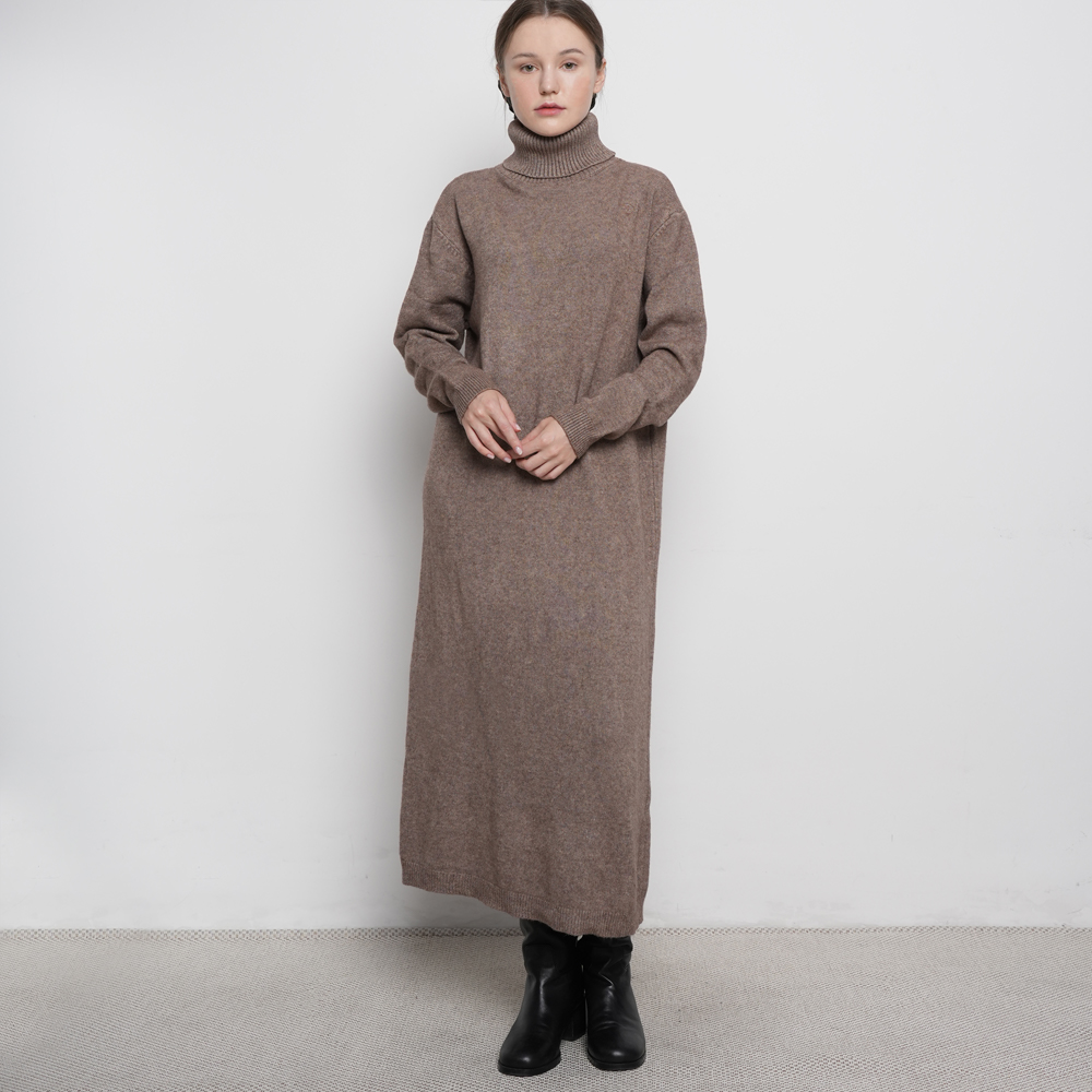 Lobby Half Cable Knit Dress - Charcoal