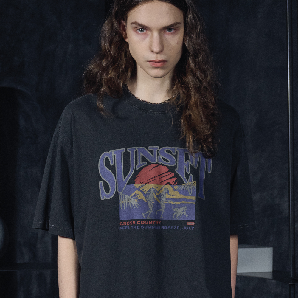 가벼운 소재로 그래픽이 특징인 스트릿 캐쥬얼 반팔티셔츠