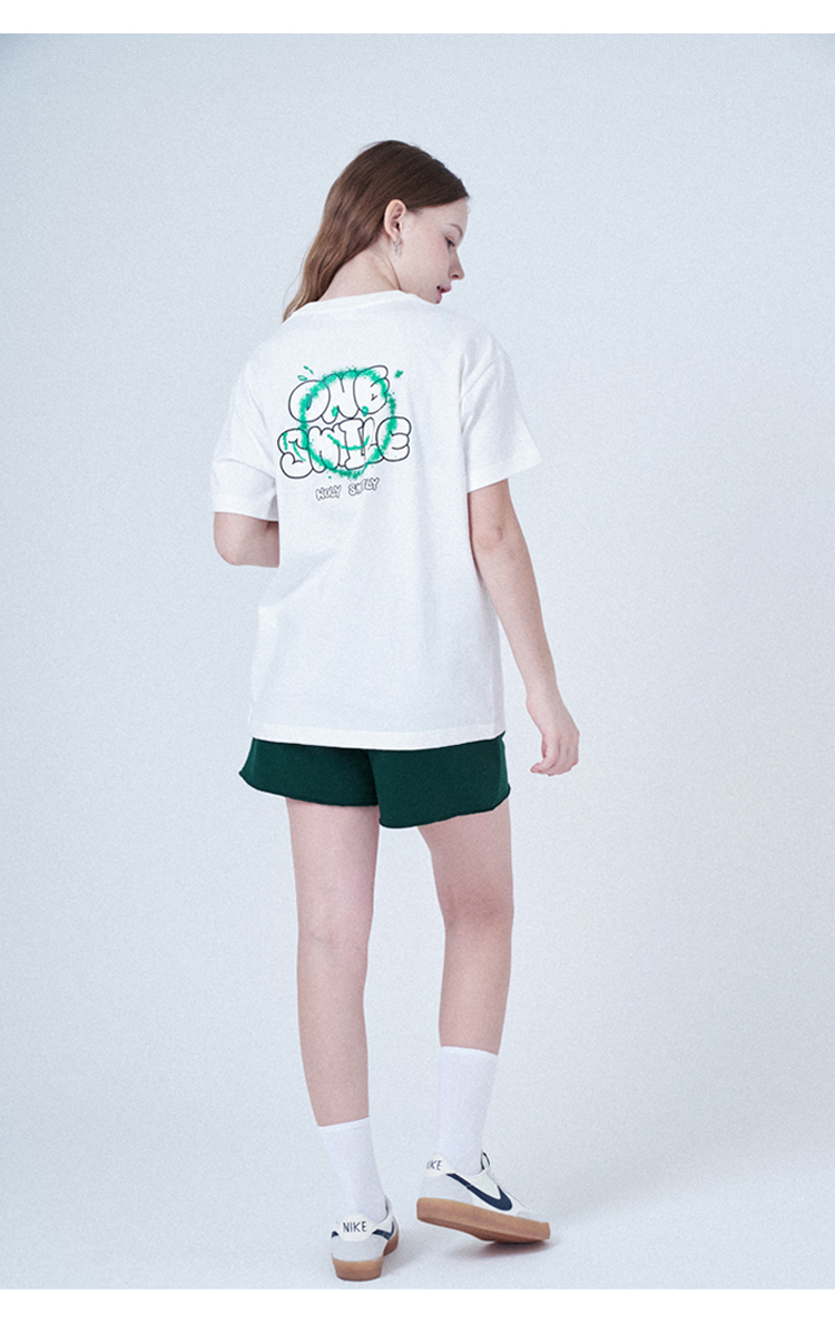 가벼운 소재로 그래픽이 특징인 스트릿 캐쥬얼 반팔티셔츠