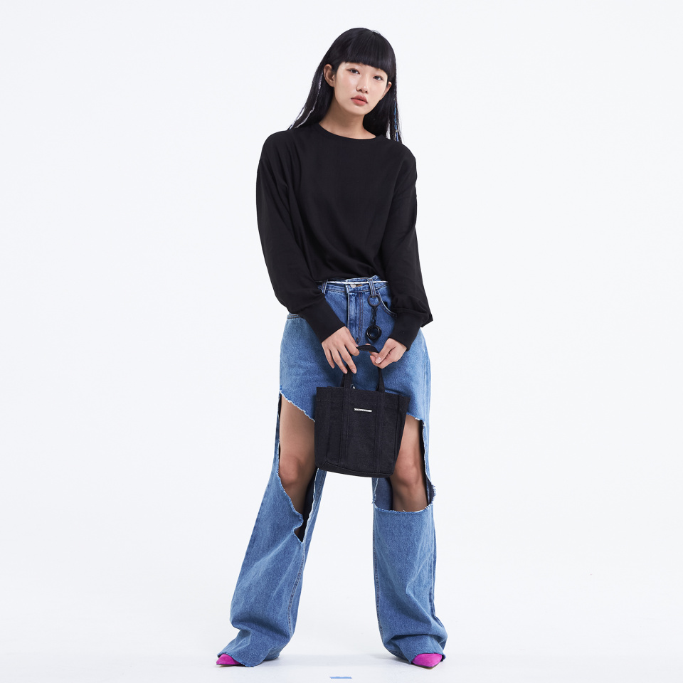 13.5온스의 탄탄한 7수 데님 소재의 미니 토트백 입니다.