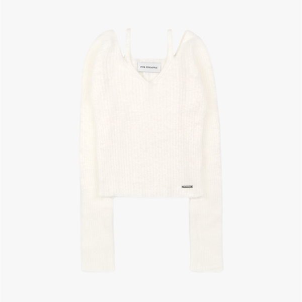 OBLIQUE NECK LINE SLIM RIBBED KNIT - IVORY
