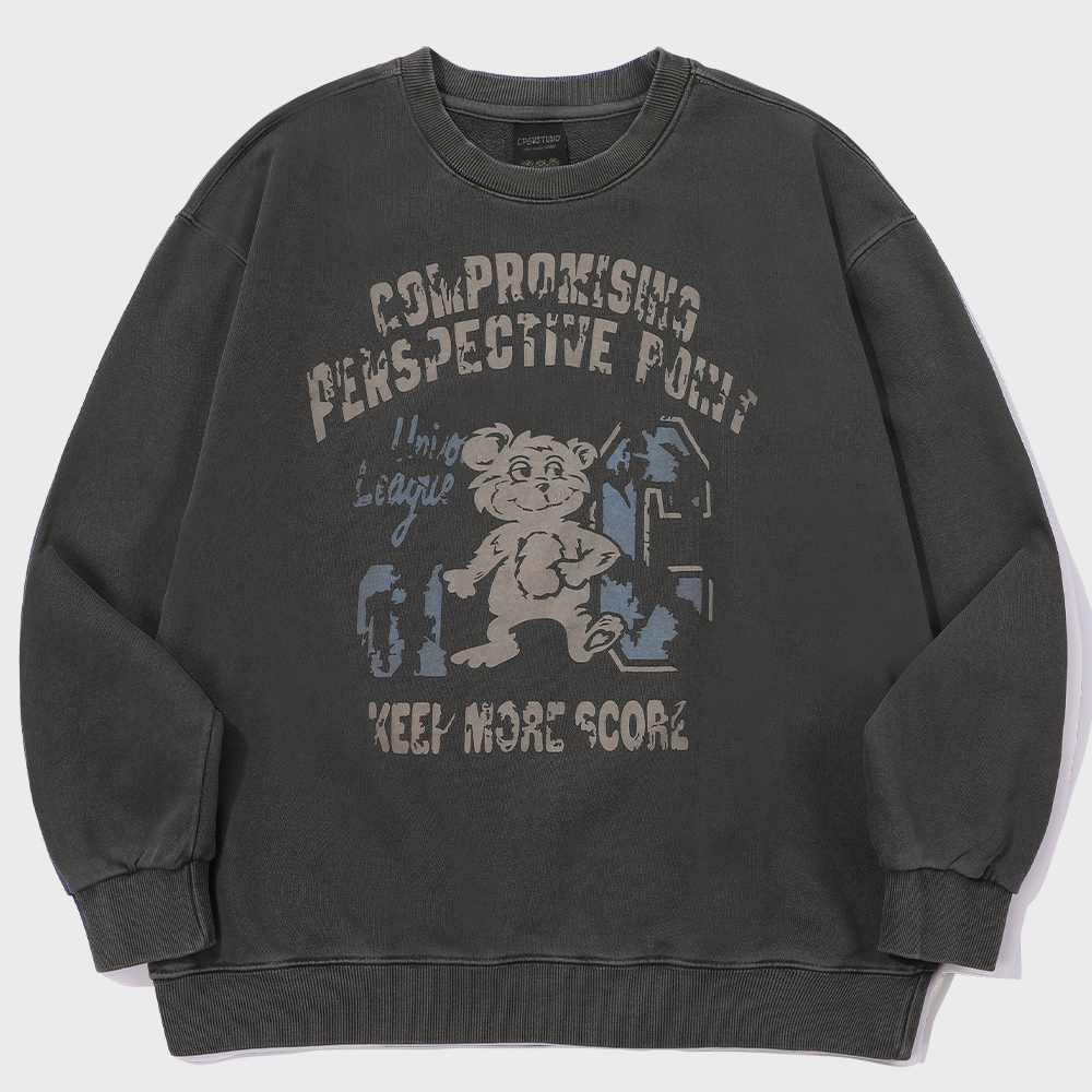 Soda Bear Raglan Pigment Sweatshirt (Smoke Black)