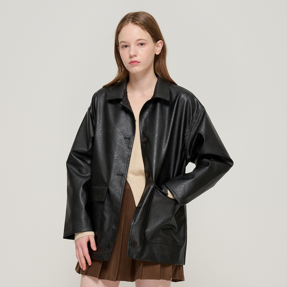 비건 레더 셔츠 자켓 - 블랙