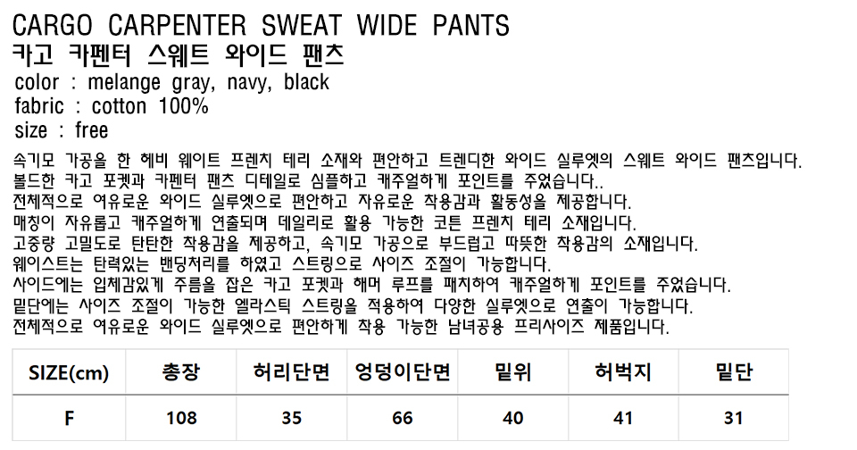 Cargo Carpenter Sweat Wide Pants - Navy (Fleece)