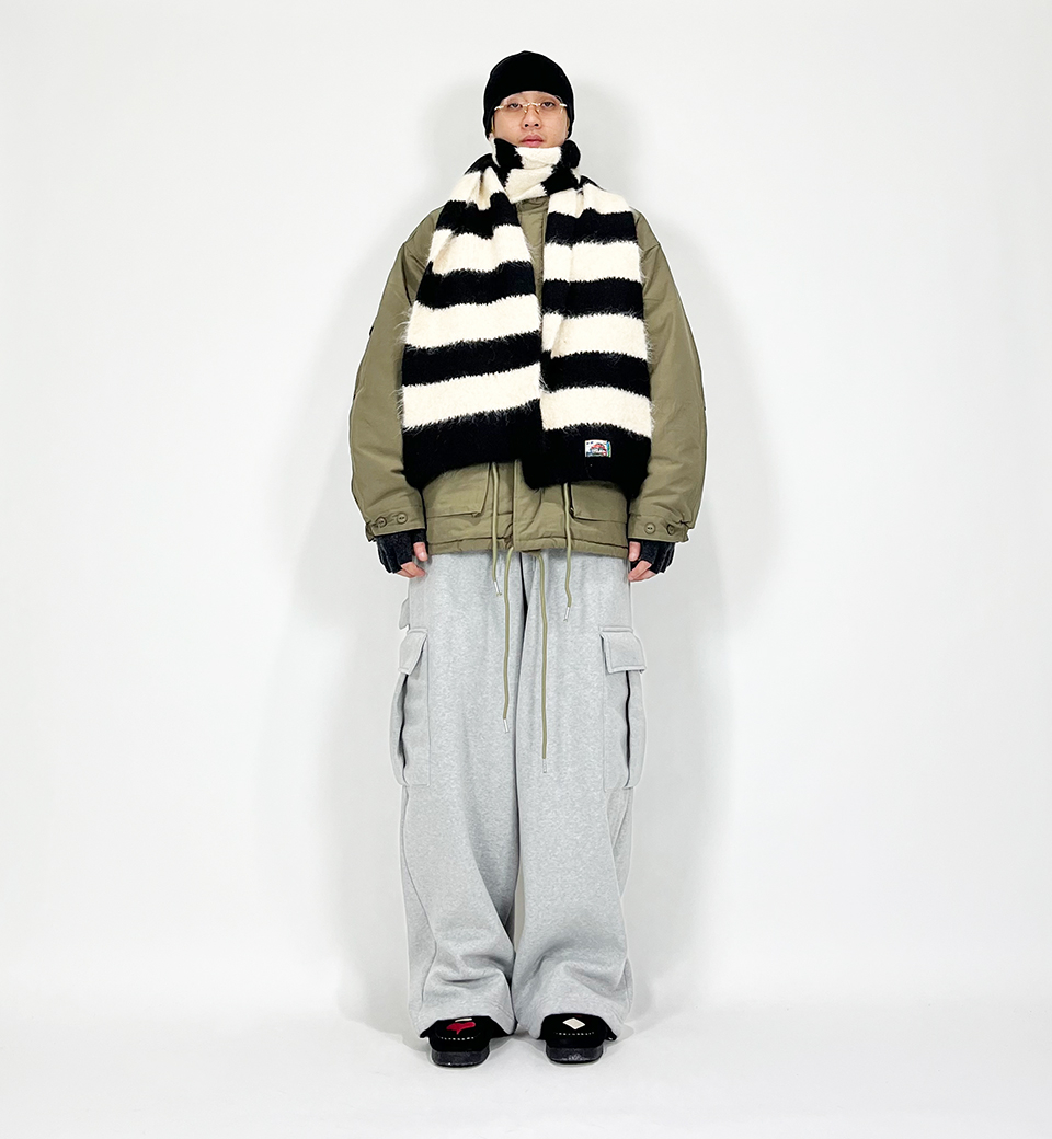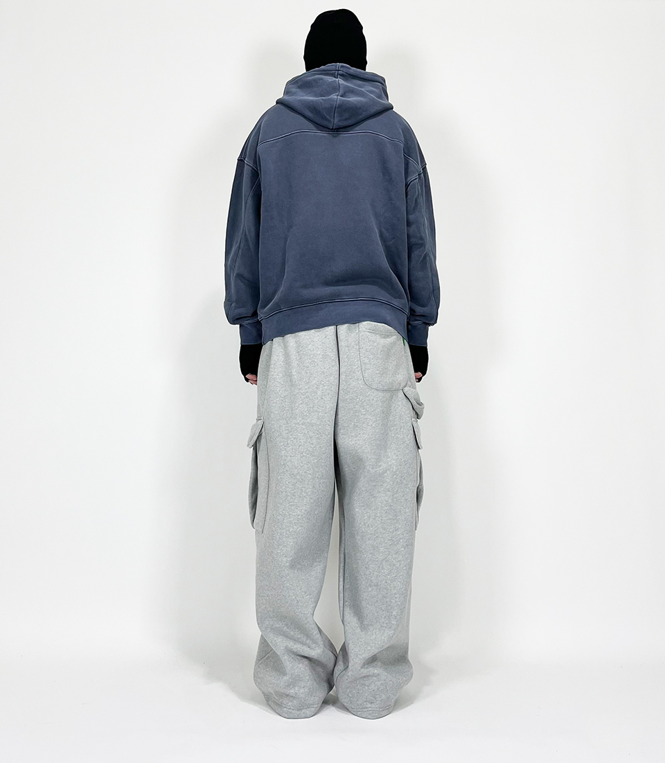 Knee Tuck Cargo Sweat Wide Pants ((White melange))